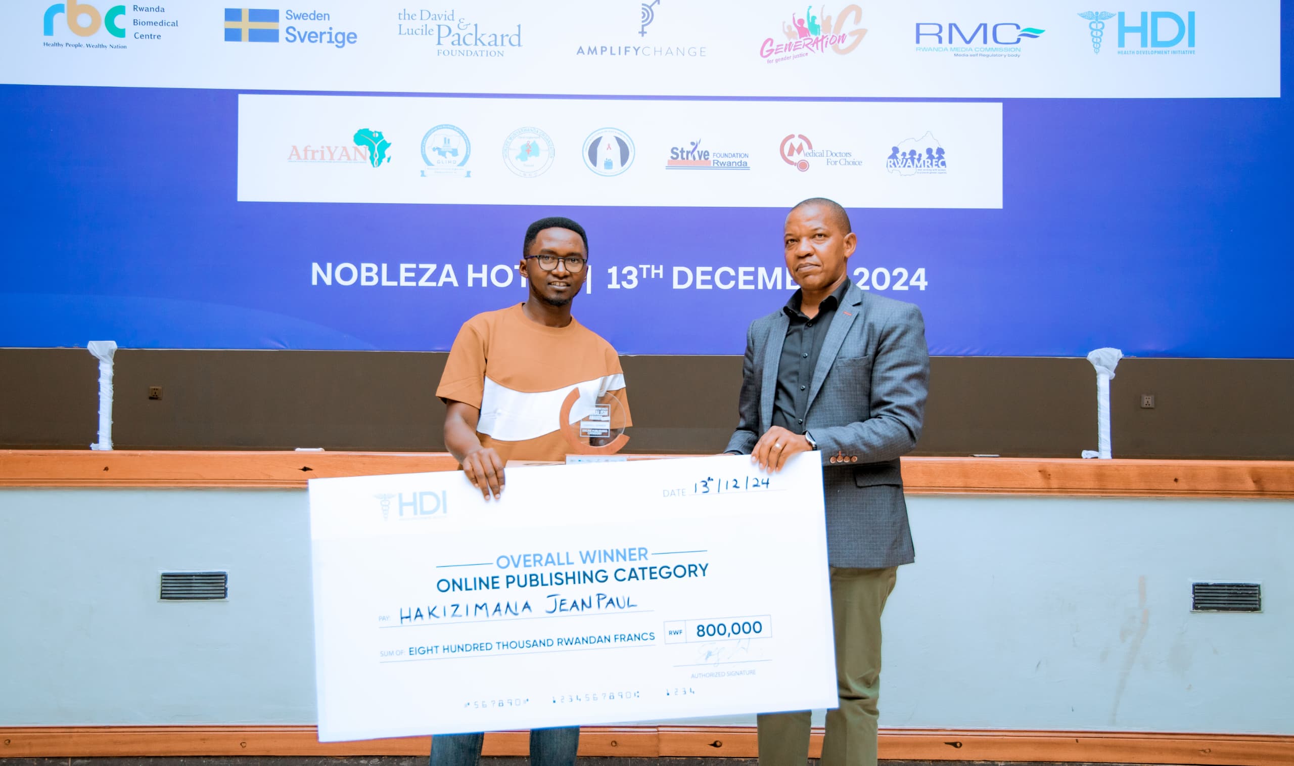Umuryango utari uwa Leta uharanira guteza imbere ubuzima bwiza mu Rwanda, HDI [Health Development Initiative], wahembye abanyamakuru 9 bakoze inkuru zijyanye z’ubuzima bw’imyororokere, zahize izindi.