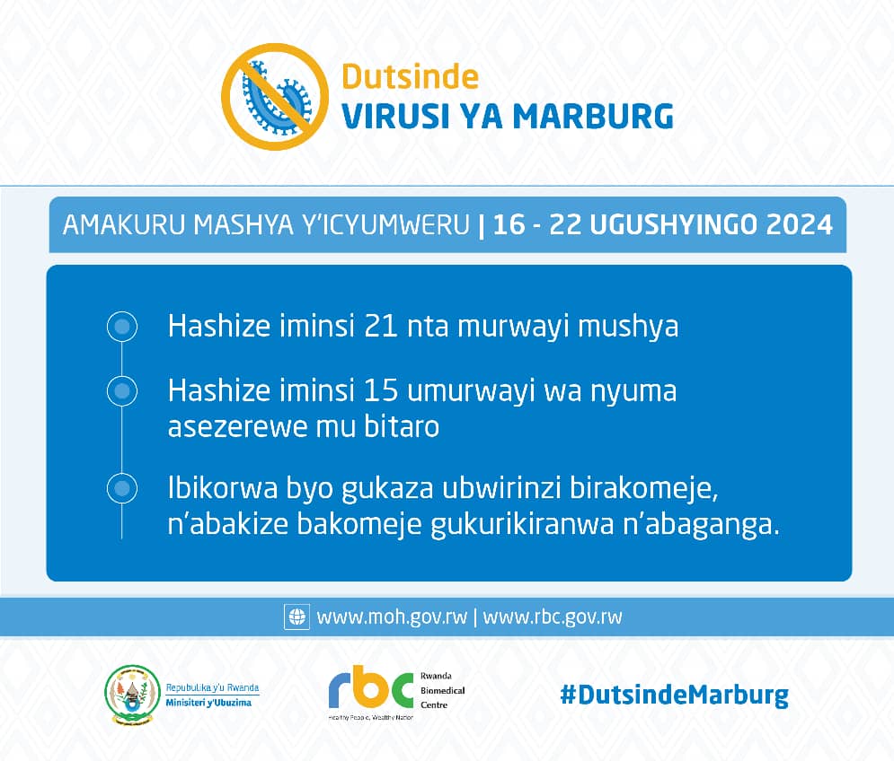 Ni itangazo rigaragaza amakuru mashya kuri virusi ya Marburg, kuva tariki 15-22 uku kwezi.